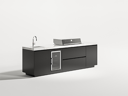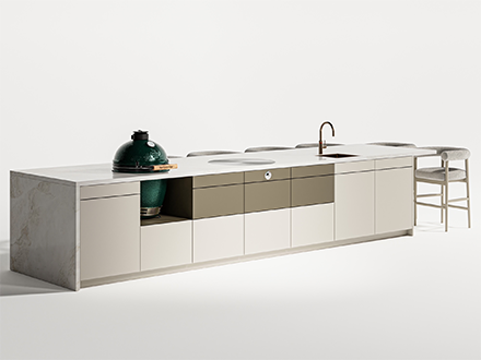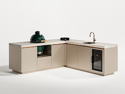 De basis bestaat uit hoogwaardig roestvrij staal, zorgvuldig afgewerkt met duurzame poedercoating in uiteenlopende kleuren en nuances. In combinatie met natuursteen en verfijnde frontafwerkingen ontstaat een rustig en elegant geheel. Pure voelt vanzelfsprekend. In vorm, in materiaal en in uitstraling. Het resultaat is een buitenkeuken die naadloos aansluit op het interieur van de woning en haar architectuur.